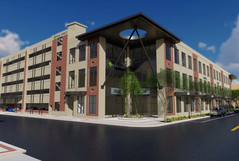 Farm Credit will occupy half of the 40,000 square foot office space located on East Orange Street and Tennessee Avenue. This project is part of the recently announced downtown parking project. The building is attached to a garage that will create an additional 700 spaces for professionals and city workers in the downtown Lakeland area.